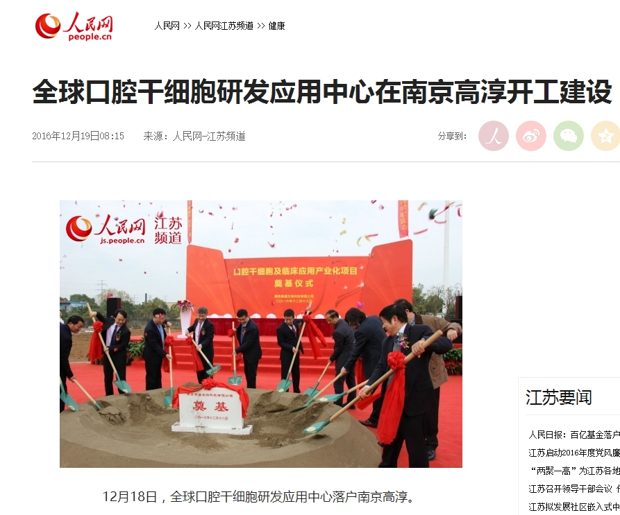 昨日,全球口腔干細(xì)胞研發(fā)應(yīng)用中心在南京高淳開(kāi)工建設(shè)。奠基儀式后,各大門戶網(wǎng)站和江蘇省各主要媒體部門紛紛在主要版塊發(fā)文,關(guān)…